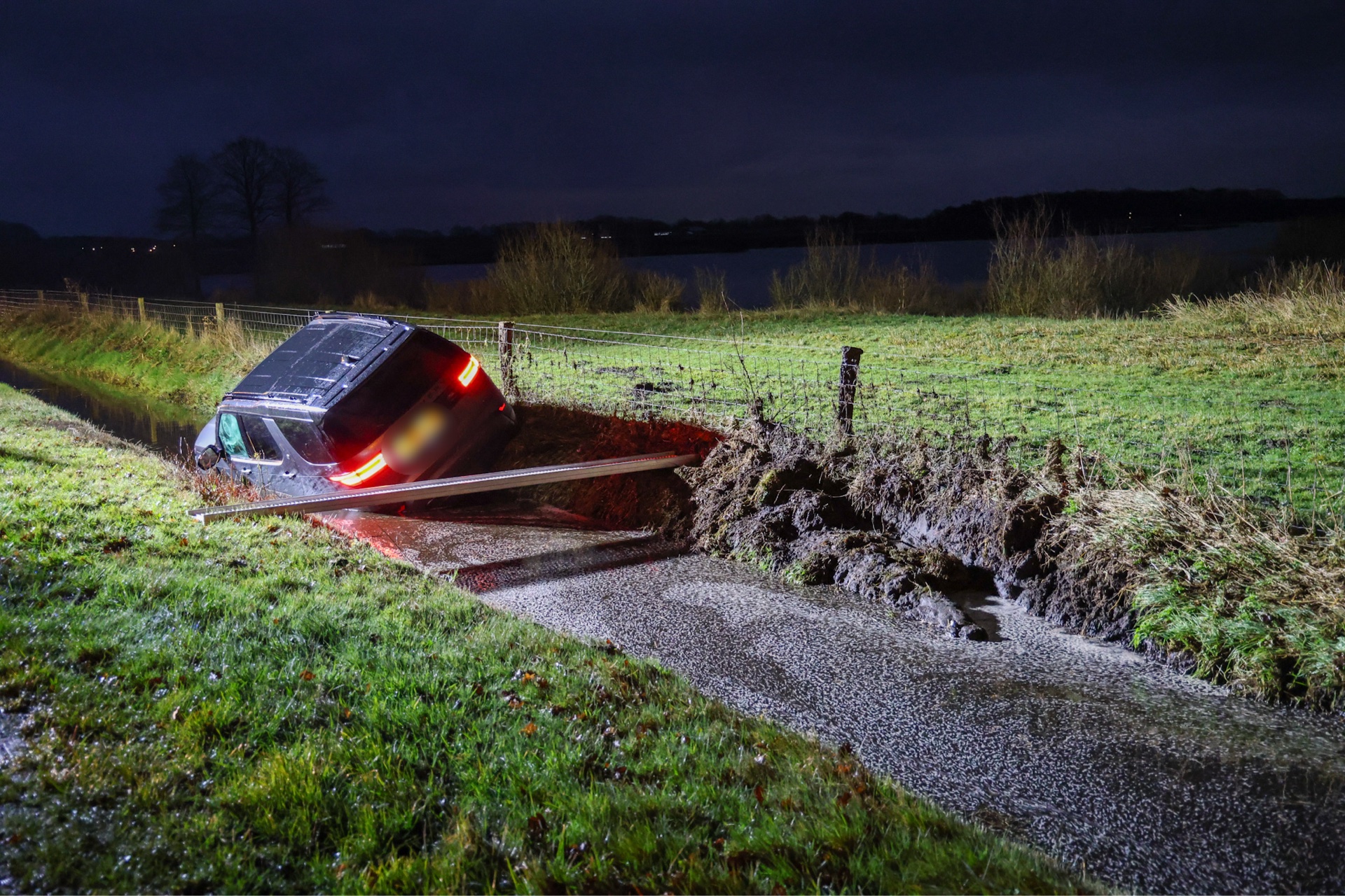 Auto belandt in sloot na gemiste bocht bij Eursinge, bestuurder aangehouden voor rijden onder invloed